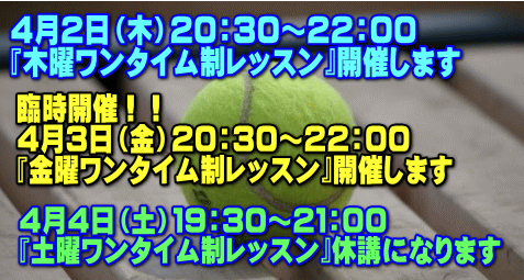 1/10(土)『土曜ワンタイム制レッスン』 開催します